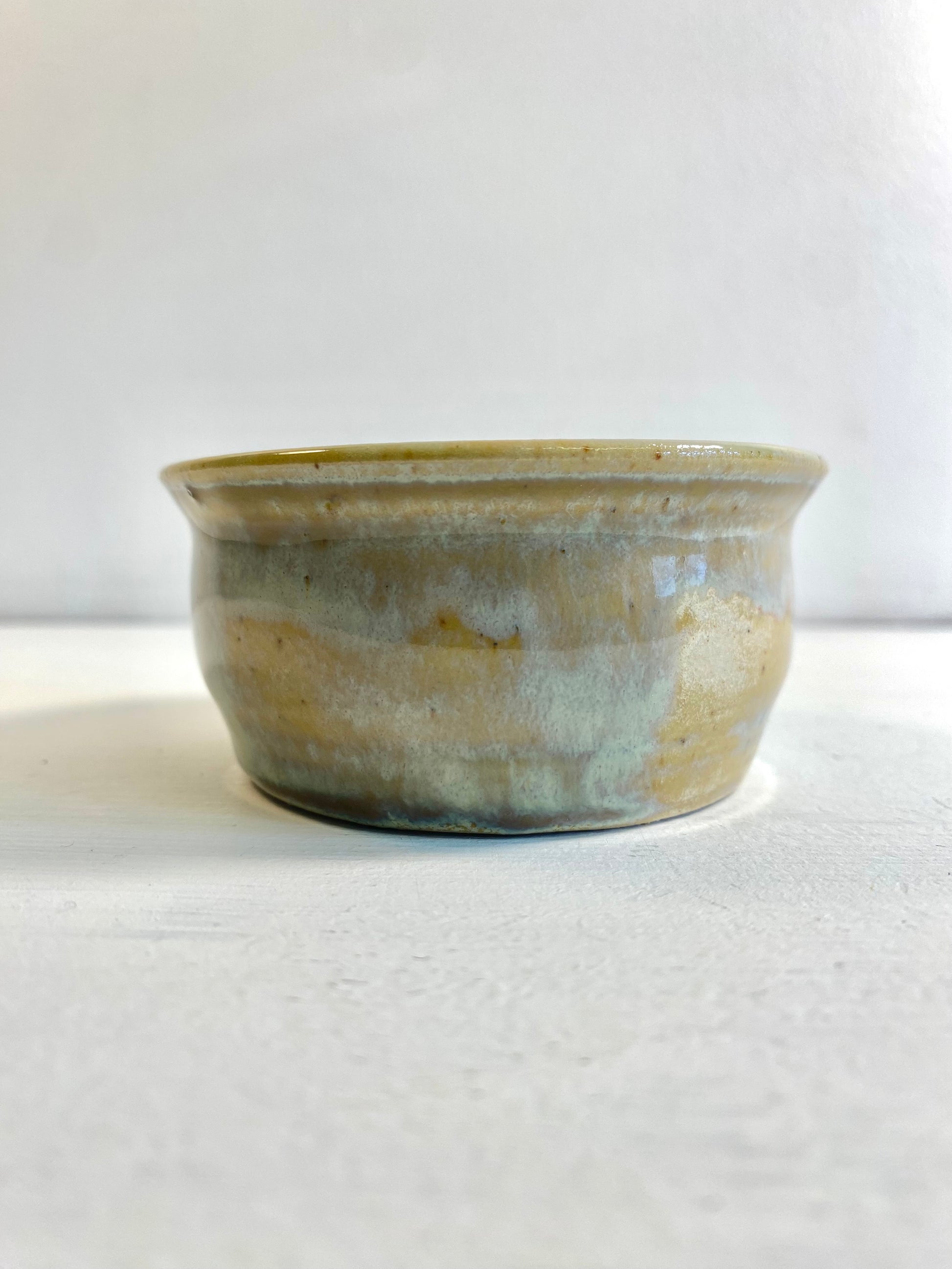 White interior with spiral leaf design with golden and blue toned glazed exterior