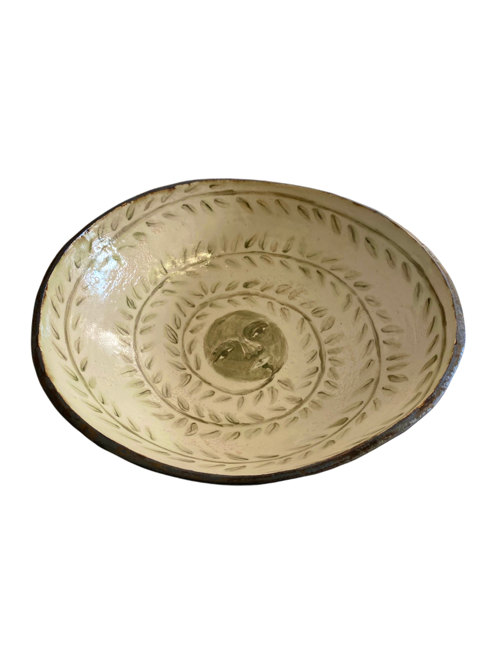 Large handmade and hand painted stoneware ceramic fruit bowl.