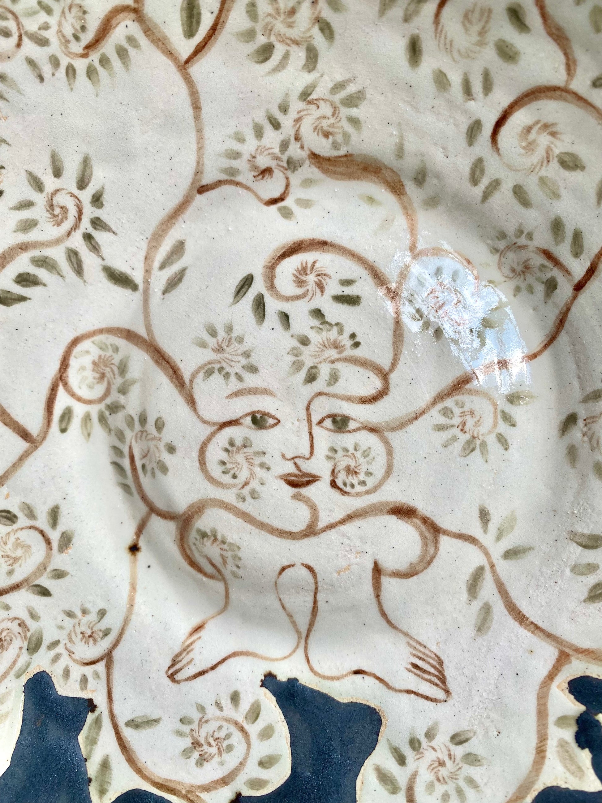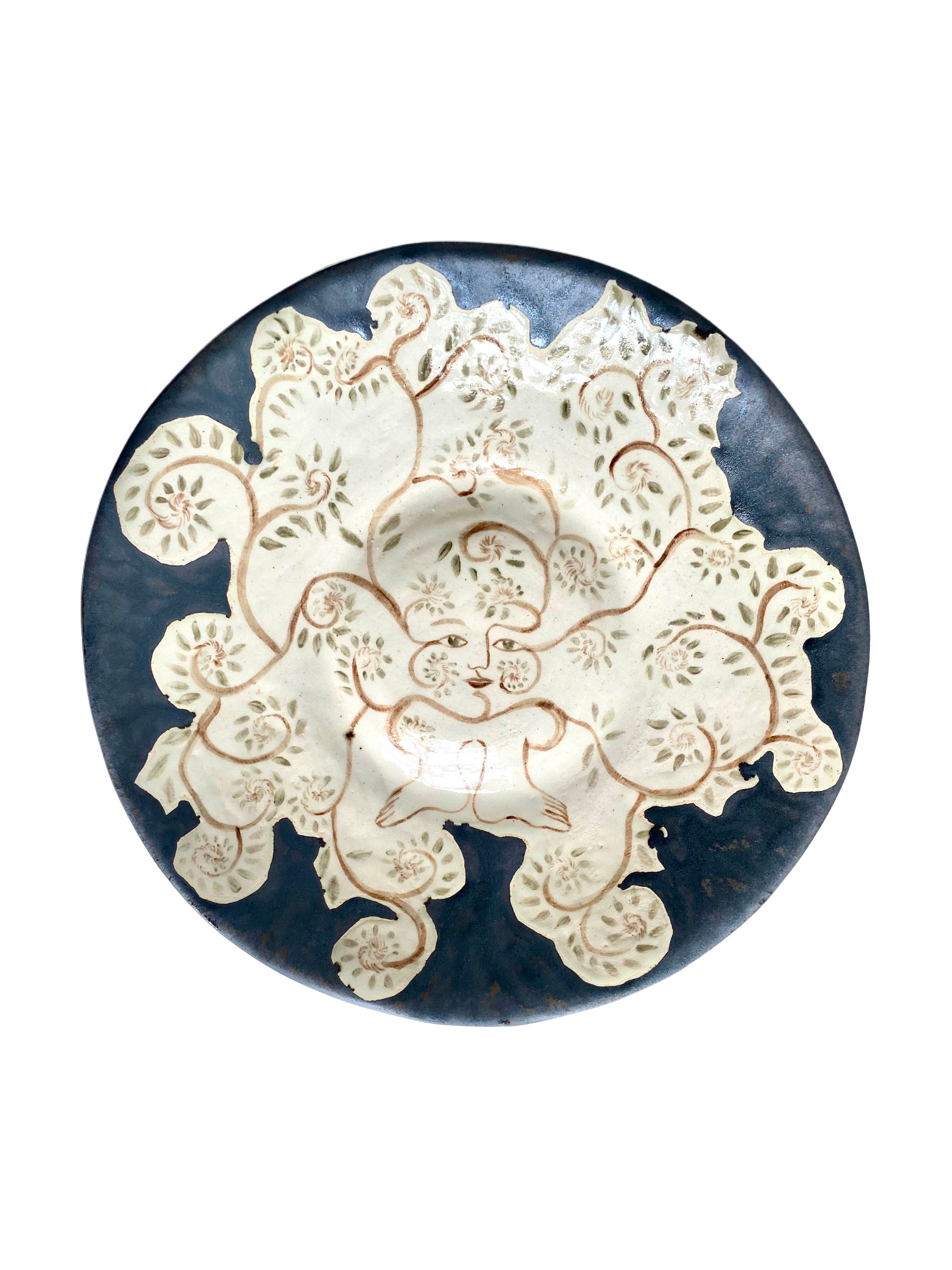 A handmade and hand-painted ceramic plate.